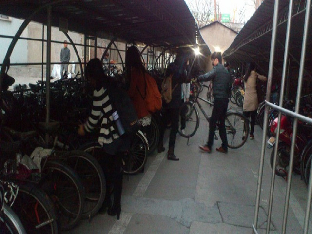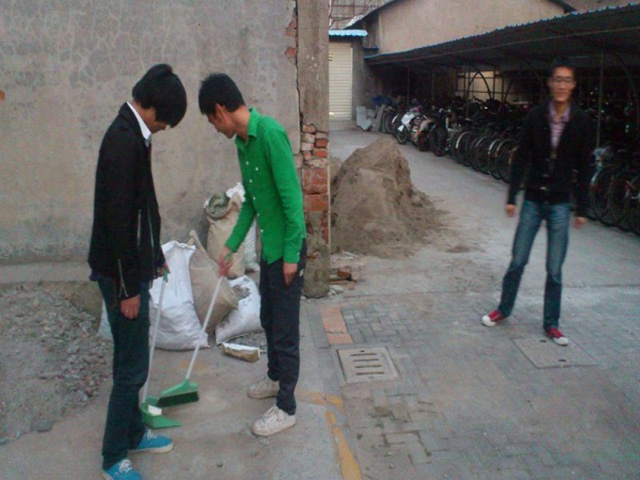 同学们先在三舍楼下对摆放比较凌乱的自行车进行了整理,都干的很起劲。此次活动我们做了详细的准备,合理的安排人员进行对自行车的摆放,也分了好多批,不同地方同时进行,一辆接一辆地推出、靠齐、并拢。这里的自行车队伍甚是庞大,成员分工合作,一人整理一列,看似很艰巨的任务在不知不觉中被逐步完成!虽然很累,但是看到被整理后的自行车列队整齐有序,看到地面上常存的纸张、塑料袋垃圾都被清理干净,大家很是兴奋和满足,从中学会团结协作,加强交流。
