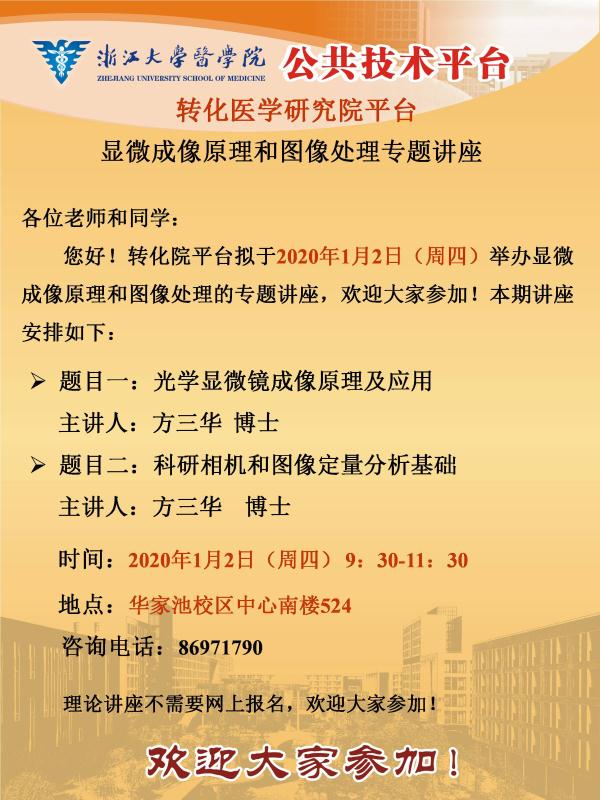 浙江大学公共技术平台(转化医学研究院分平台)——显微成像原理和图像处理专题讲座