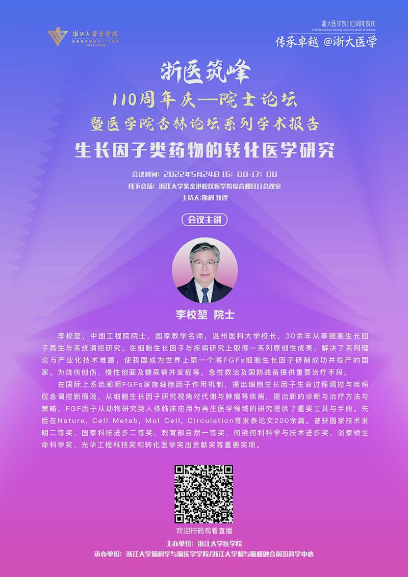 “浙医筑峰—110周年庆 院士论坛”——李校堃院士