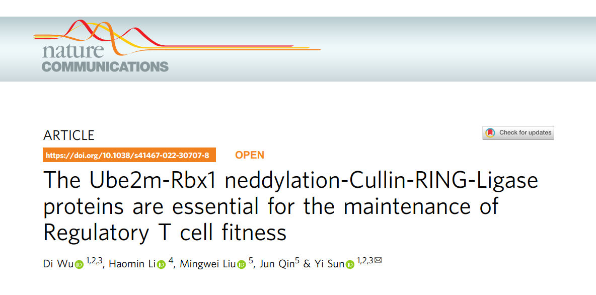Nat Commun|浙江大学转化医学研究院孙毅教授课题组发现Ube2m-Rbx1拟素化-泛素化轴维持调节性T细胞的功能特性