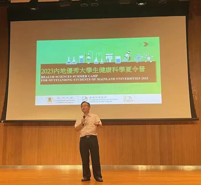 在夏令营活动期间,澳门大学健康科学院的教授们为同学们带来了当今前沿研究领域相关的学术讲座。五次讲座,分别从精准肿瘤医学、干细胞、自噬、植物多酚以及光学脑功能的影像研究五个方面展开。教授们以生动形象的语言,从基础知识出发,深入浅出地与同学们分享了他们从事研究的重要领域。通过风趣并严谨的讲解,同学们了解了许多课堂上未曾涉及的知识,拓宽了对未来研究方向的认识和选择。